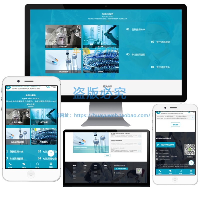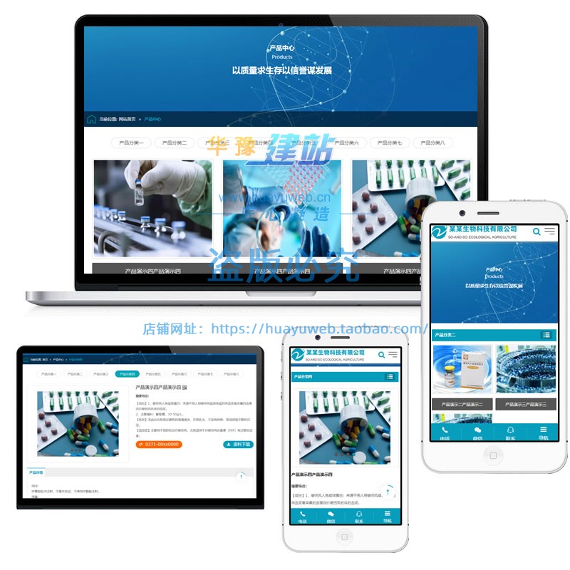 蓝色自适应医药网站模板生物技术医疗机械制药类企业集团php源码